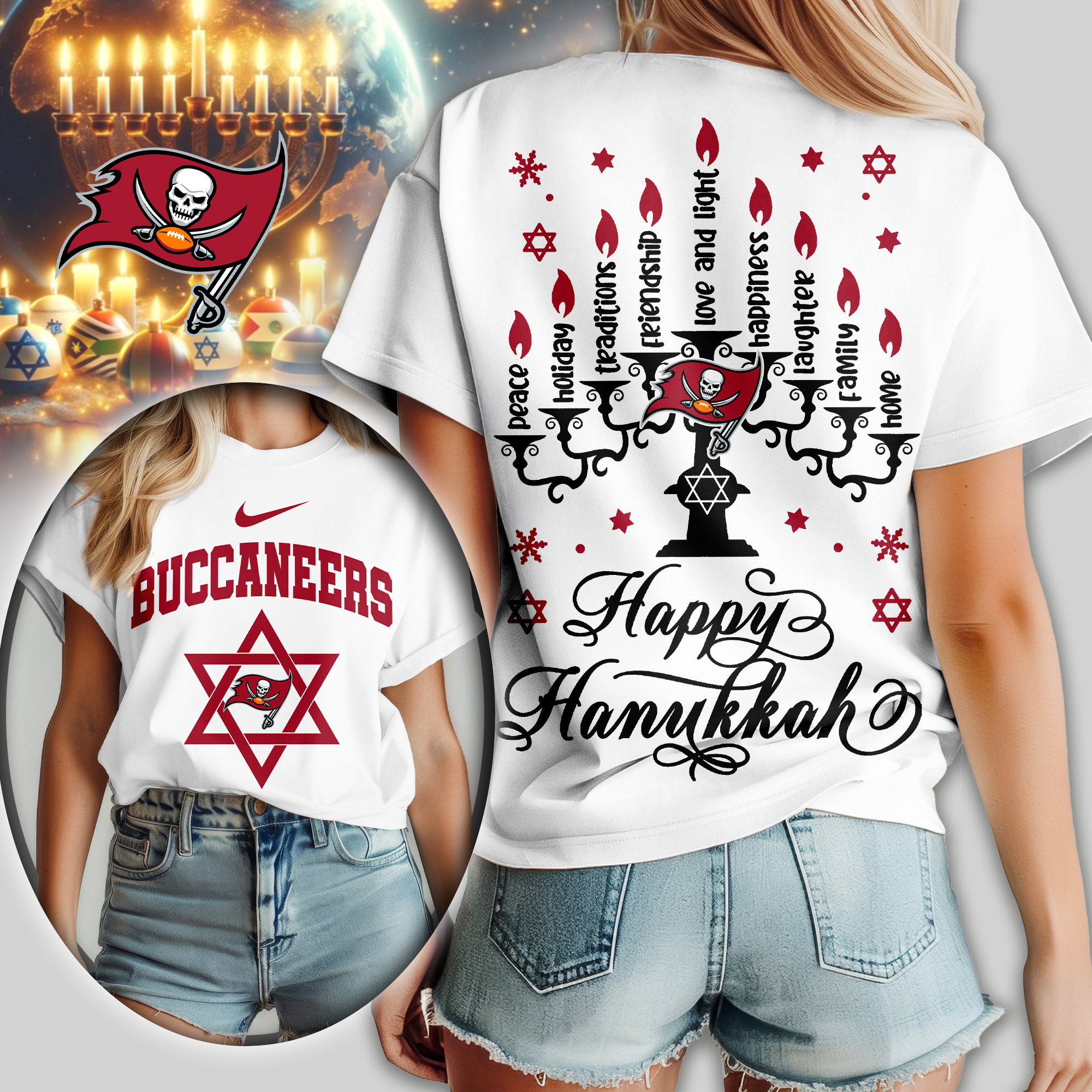 Tampa Bay Buccaneers | Premium NFL Happy Hanukkah Women Shirt